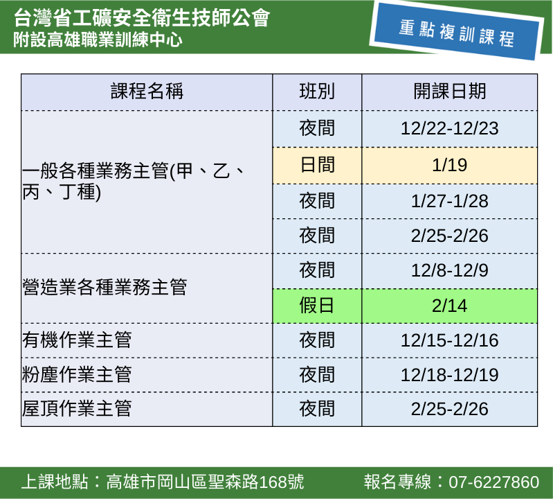 (3)本中心另設有官方LINE帳號,好友連結位於網站右側LINE圖示,如有職安衛課