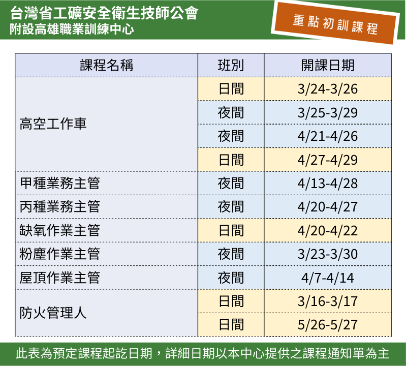 訓、複訓、補助課程以及近期活動。